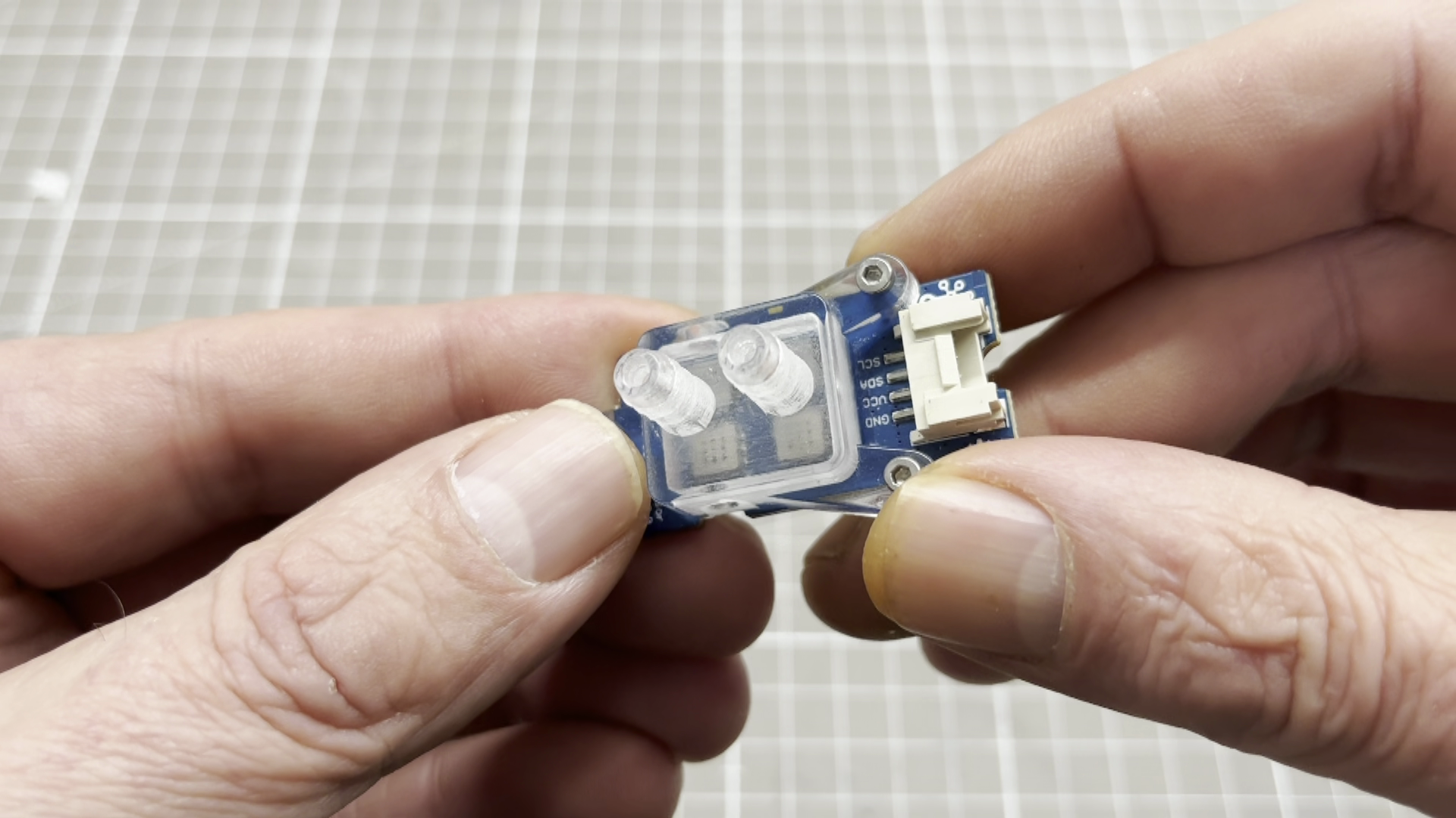 Müsste man testen. Und ein Gehäuse mit zwei Schlauchnippeln 3-D drucken, das man über den Sensor stülpt und mit der Platine verklebt.